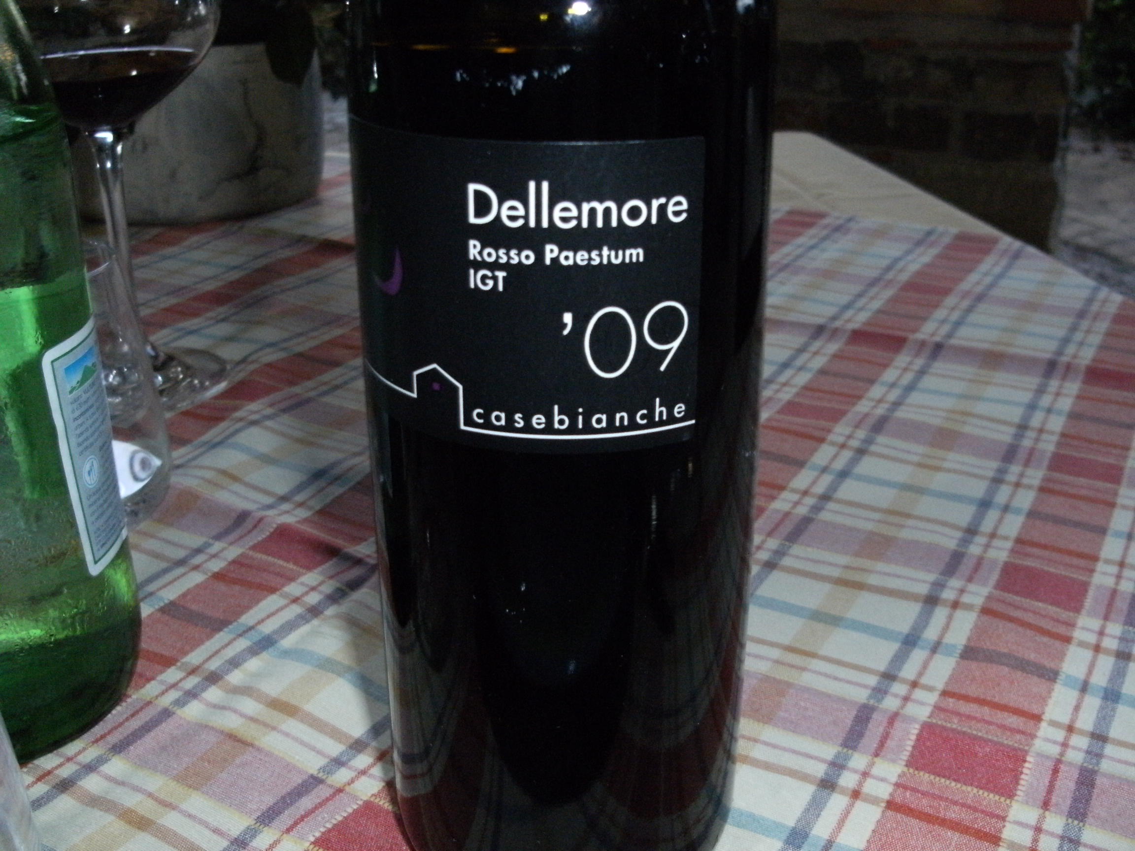 Per secondo salsiccia di maiale alla brace con contorno di melanzane a funghetto. Per finire frutta e dolce. Il tutto accompagnato da un’ottima bottiglia di vino rosso cilentano di Casebianche, il Dellemore 2009.