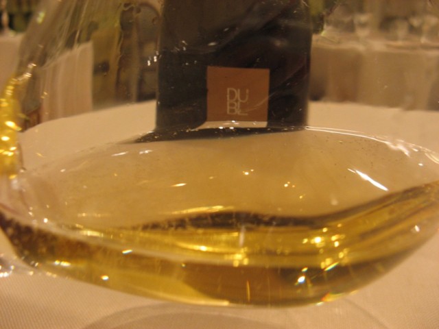 Qui a Sorbo Serpico sono numerosissime le persone in visita provenienti da tutto il mondo sia per conoscere i vini sia per provare la cucina dell’ormai famosissimo ristorante Marennà che proprio quest’anno ha conquistato la stella Michelin. Ritornando agli spumanti Dubl, la Feudi di San Gregorio ha avviato questa produzione avvalendosi della consulenza di Anselme Selosse. Il Dubl 2006 da uve greco esprime tutta la ricchezza di profumi e la ricchezza del corpo di questo vitigno a bacca bianca che sempre più riesce ad affascinare il pubblico. Nel bicchiere ha colore giallo oro brillante, una buona intensità olfattiva leggermente in evoluzione, esordisce sui toni fumé e sulfurei, poi frutto della passione e zenzero candito e vira lentamente alla chiusura di mandorla tostata.