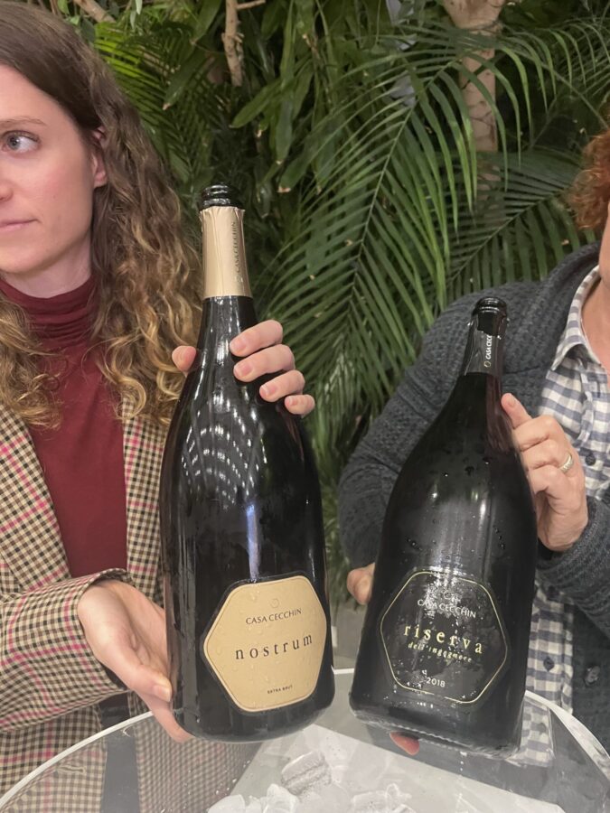 Casa Cecchin Nostrum Extra Brut 36 mesi sui lieviti, si presenta con una spuma persistente e bolla fine, possiede una grande freschezza e ricordi di frutta.