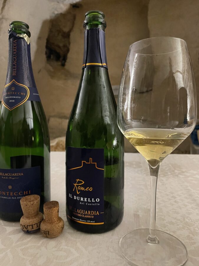 Romeo il Durello del Castello di Bellaguardia Extra Brut 2012 trascorre oltre 10 anni sui lieviti nelle cave medioevali e altri 24 mesi post degorgiatura. E’ uno spumante dal bouquet leggermente tostato con note di nocciola e mandorla, mela cotogna e fiori. Al palato è morbido e corposo molto goloso.