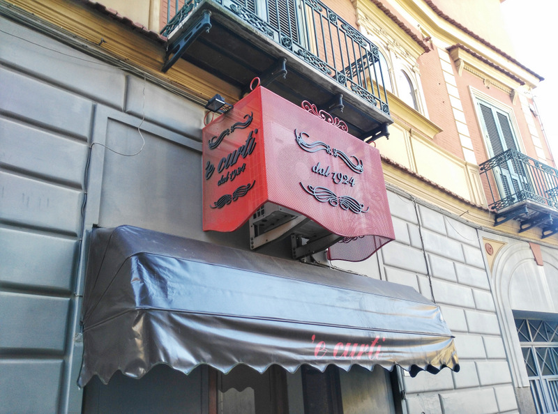 Sono stati gli elementi che hanno portato me ed il mio amico a scegliere come indirizzo per il pranzo il ristorante ‘E Curti di S. Anastasia. La fama lo precedeva: tanti i riconoscimenti, moltissimi gli avventori ad avermene parlato bene ed il soffritto che è protagonista della mia pizza fritta preferita, quella dei fratelli Salvo a S. Giorgio a Cremano.