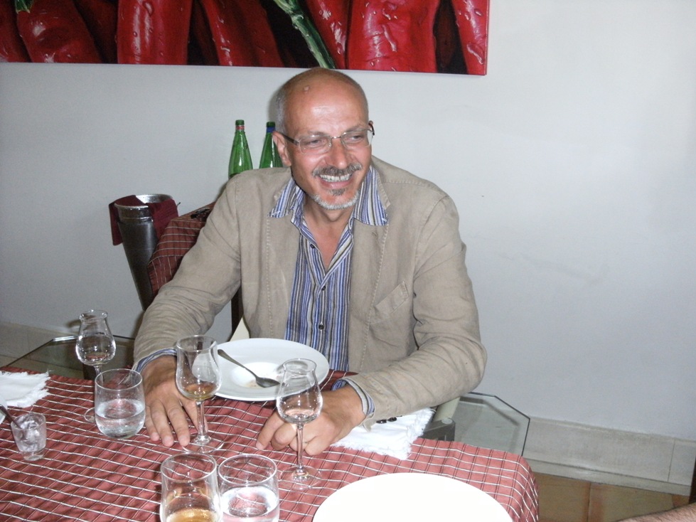 Prima di passare ai primi piatti, vorrei spendere due parole sul nostro anfitrione Maurizio Somma, virologo di professione ma anche eccellente gourmet. Egli è il vero deus ex machina di questo ristorante: proprietario, organizzatore, nonché ideatore fantasioso di tutti i piatti presentati, con la fattiva collaborazione della brava chef Teresa Di Napoli si capisce. E’ una persona affascinante, coinvolgente, affabulatrice. Parla in continuazione, come un fiume in piena, ma sempre con cognizione di causa, senza annoiare e con un tono di voce pacato e suadente. E’ proprio un vero piacere ascoltare le sue dissertazioni a 360 gradi. Tutti noi presenti, comunque, recitiamo bene la parte dei comprimari, con una menzione speciale per l’ottimo avv. Antonio Verrone.