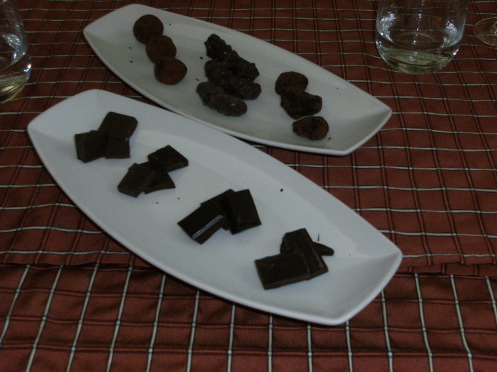 E per finire una grande varietà di cioccolato fondente dei migliori produttori, come Domori, Maglio, Amedei, e Corallo. Una goduria inarrivabile, credetemi. In abbinamento a queste golosità sono stati proposti un Moscato passito Santiquaranta 2008 e un Barolo chinato di Cocchi.