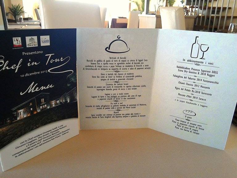 L’iniziativa in questo locale situato in un piccolo centro in provincia di Potenza, realizzata con la regia della Luis Wine & Dine Events dei sommelier Vincenzo Isoldi e Giuseppe Lupo, è la seconda in ordine temporale dopo l’evento di ottobre scorso che ha visto ai fornelli Gianfranco Bruno, il migliore Chef emergente del Sud 2015.