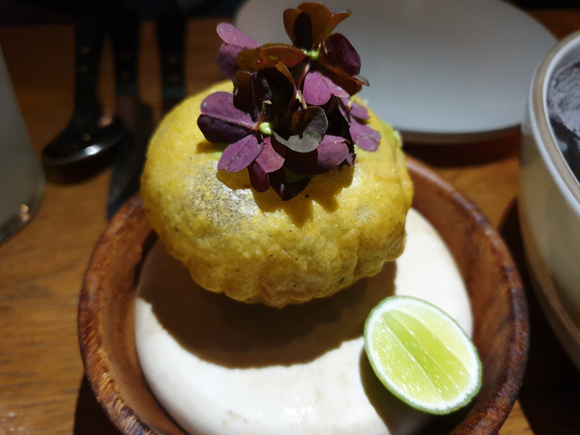 Faccio un paio di premesse. Cosme nell’impostazione è un locale molto newyorkese. Il grande bar, che occupa quasi tutto l’ingresso, un servizio easy, però cortese e attento, grandissimi cocktails, lista dei vini con ricarichi molto importanti. Musica a palla, i piatti si possono mangiare anche al bar. Enrique Olvera è un monumento per la cucina messicana, è stato il cuoco che più di tutti ha proiettato lo stato sud americano nel gotha della gastronomia mondiale, portando in giro la propria cultura gastronomica. Queste premesse sono dovute, perchè se vi aspettate di trovare un ristorante “classico all’europea” rimarrete delusi. Invece se andrete scevri dall’idea che l’alta ristorazione sia un monastero dove recarsi in preghiera, proverete una delle esperienze più fighe che in questo momento New York offre.