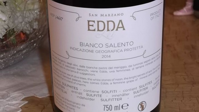 Naturalmente ho assaggiato il millesimo 2014 di Edda (cioè “lei” in dialetto pugliese e meridionale, riferendosi propriamente alla figura della donna del Sud, fascinoso emblema di prolificità e di lavoro), prodotto in sole 4.667 bottiglie numerate e che è maturato prima in acciaio e poi in barriques per quattro mesi. La gradazione alcolica arriva a toccare i tredici e mezzo.