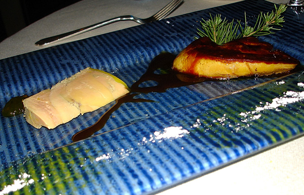 Nove piatti cosi’ sono sfiancanti , se poi li devo scegliere solo per fare il figo che viene qui a raccontarvi quanto ho mangiato , con tutte le descrizioni annesse e connesse … sai che noia per me e per voi. Quindi il colpo di genio è andare per la carta e da parte mia scansando le cose che mi paiono insidiose e scegliendo due piatti che per un francese sono l’A-B-C, come da noi gli spaghetti con le vongole o un risotto alla milanese : foie gras e rognone.