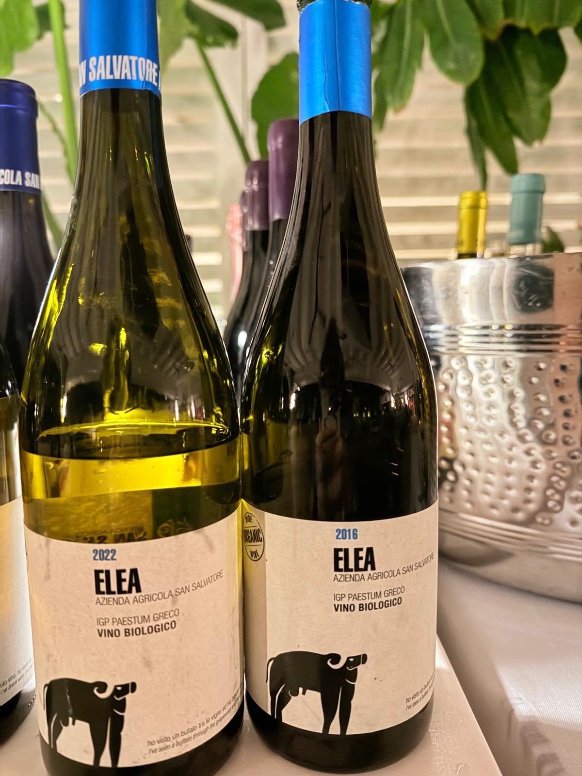 In una magnifica serata di transito dalla Primavera alla nuova lunga estate calda proviamo tutta la produzione di San Salvatore 1988, l’azienda fondata da Peppino Pagano con la quale collabora, sin dall’inizio, il grande Riccardo Cotarella. Non mancano le sorprese e ancora una volta, come sempre in Campania, i bianchi ci colpiscono particolarmente, soprattutto quando si passa a quelli che hanno superato qualche anno dalla vendemmia. Ma quello che ci ha maggiormente colpito di questa maratona è stato Elea, una etichetta di cui si parla molto poco rispetto alle altre più famose. Abbiamo così riscoperto il Greco del Cilento, annate 2022 e 2016, coltivato nel comune di Giungano, vicino Paestum, a circa 200 metri di altezza, leggermente passato in barrique e affinato poi in bottiglia. Il risultato è stato strabiliante e competitivo con tanti bianchi rinomati.