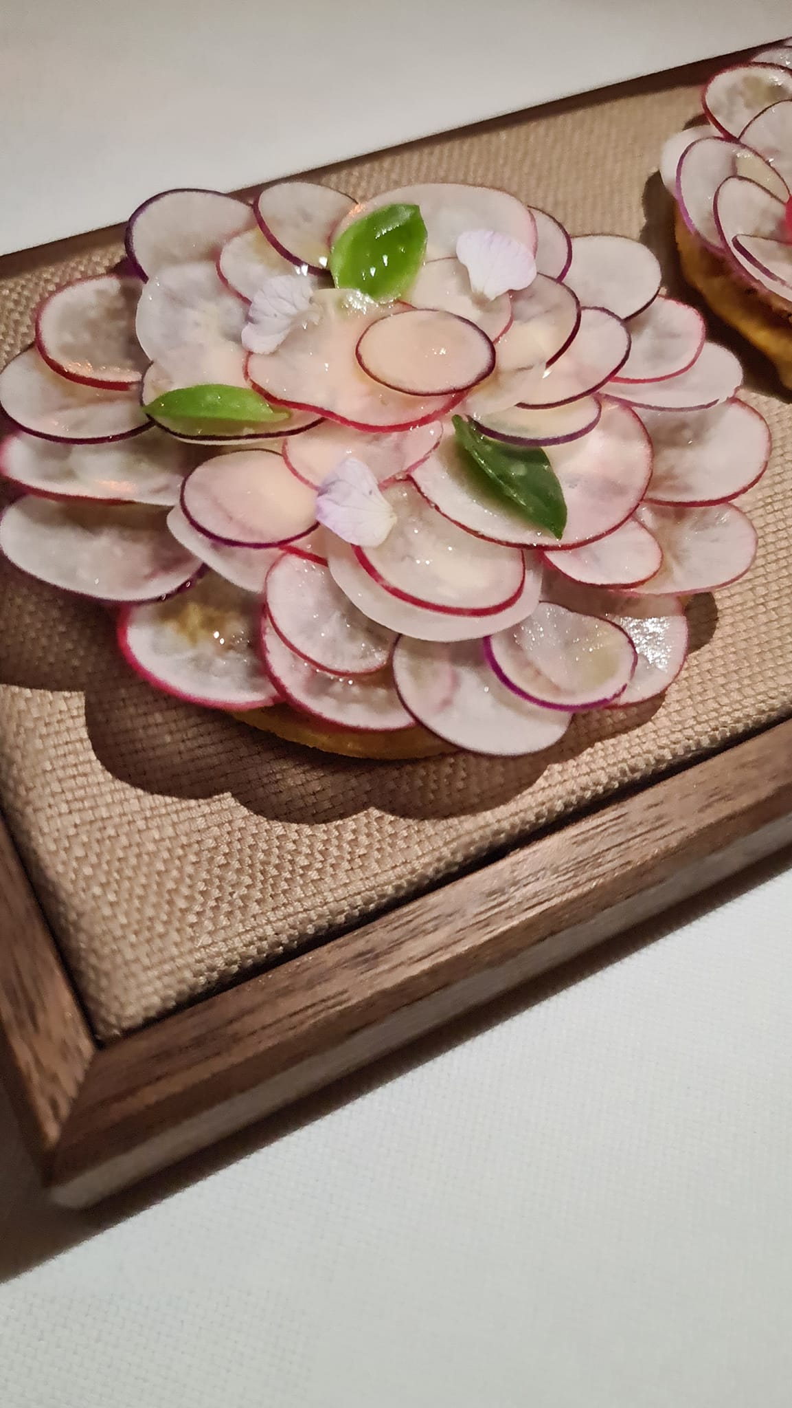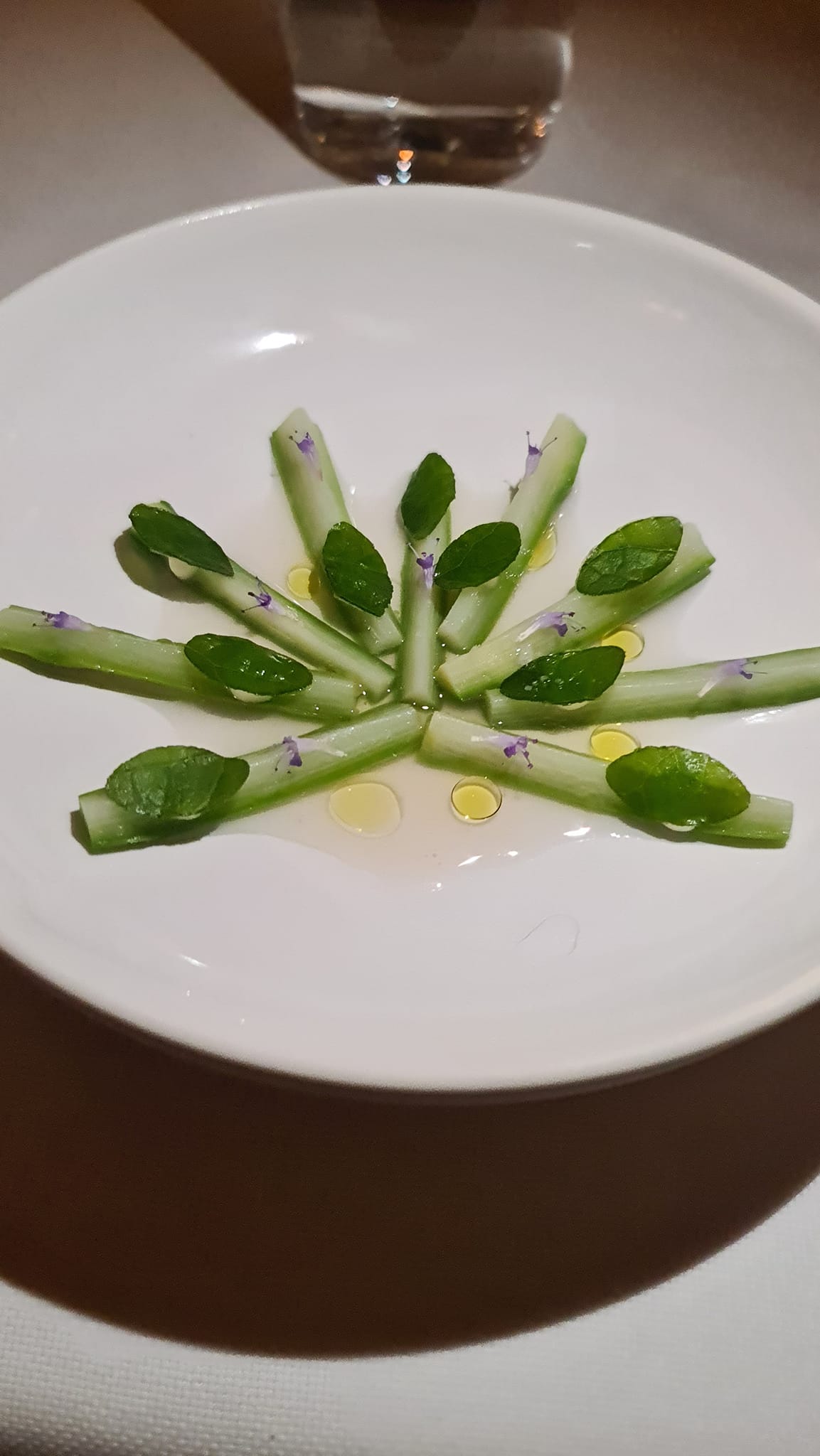 Partiamo dall’accoglienza e dal servizio, siamo stati benissimo. Il ristorante era stracolmo, prenotazione per il servizio delle 22.00, si rimpiazzavano i tavoli come da tradizione. Il nostro tavolo non era ancora pronto, ci hanno fatto accomodare al bar. Dopo una decina di minuti, in cui non ci hanno mai lasciati soli, ci siamo accomodati. Capito che parlavamo italiano, hanno cambiato l’ordine del servizio e subito si è avvicinato un ragazzo che parlava l’italiano, dicendoci che se avevamo piacere di parlare in italiano ci avrebbe servito lui. Il tutto in una maniera molto elegante. Non ordiniamo vino, ma dei cocktail analcolici. Nessuno si scompone e vengono portati a tavola e raccontati come se stessimo bevendo uno Château Pétrus di qualche rara annata.