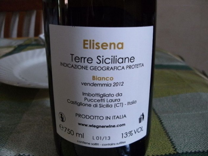 Nell’occasione ho degustato l’etichetta Elisena Terre Siciliane Bianco Igp 2012. Solo acciaio e vetro e tredici gradi.