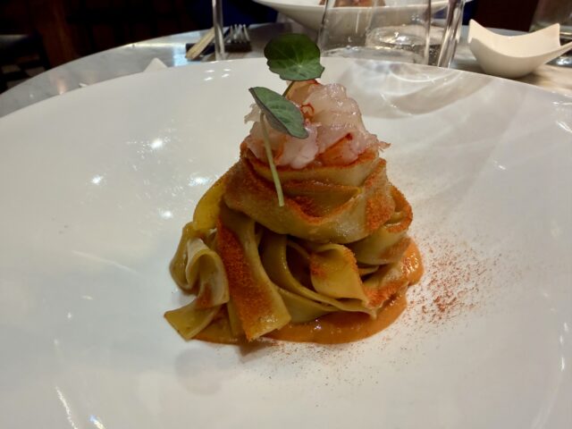 Accanto a Takamitsu lavora il giovane sous chef Matteo Sparvieri, 28 anni, che porta nella brigata radici abruzzesi e romane. Nato a Vasto, cresciuto in Umbria e formato a Spoleto, ha maturato diverse esperienze professionali prima di arrivare a Roma, dove è diventato capo partita a Enoteca La Torre Prati. A Tritone la collaborazione tra i due chef prende forma anche in proposte fuori menu che reinterpretano la tradizione mediterranea attraverso lo sguardo creativo di Takamitsu: dai Paccheri Rolls ripieni di genovese di tonno alle Impronte di mare, gnocchetti vegetariani aromatizzati al timo e limone, fino al Koboruta Pork, filetto di maialino glassato e cotto a bassa temperatura. Piatti che raccontano l’incontro tra la precisione nippo-brasiliana dello chef e le influenze territoriali di Sparvieri, dando vita a una cucina contemporanea e in continua evoluzione.