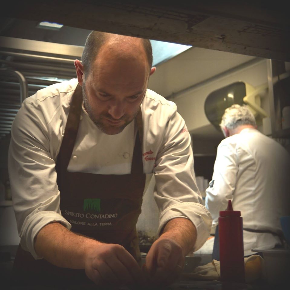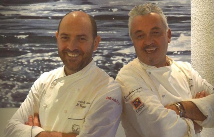 Durante la serata dedicata interamente al maestro Gino Veronelli (autore in passato assieme ad un giovane Gegè Mangano, di un libro “omaggio” alla cucina garganica), i due chef pugliesi imbastiscono un percorso straordinario, ricco di sapori e di raffinata poesia, dove nulla di questa terra sembra andar perduto, dove persino i tanti sfregi inflitti a questo paesaggio dai suoi stessi abitanti, appaiono ora rimediati. La pezzogna, che un tempo era scomparsa da questo mare, ora è ritornata copiosa a viverlo, cosi come gli antichi mugnoli (una verdura che unisce nella stessa pianta il sapore delle cime di rapa a quello dei broccoli), ora di nuovo rigogliosi al loro posto, sulle ventose e pietrose gobbe garganiche.