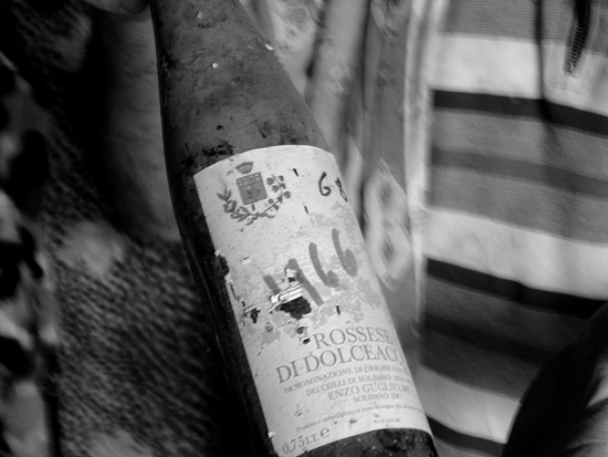Come al solito gli tiriamo la giacca per farci stappare qualche vecchia bottiglia dimostrativa di quale classe è in possesso il Rossese in fase di invecchiamento avanzato. Andiamo fino alla 1967 stavolta, c’è Marco Carmassi con noi , già Sommelier professionista e degustatore ONAV, genovese, classe 1967, e allora Enzo si sbottona e tira fuori il vino da anniversario. Il vino è incredibilmente vivo così come è incredibilmente impeccabile il tappo . Risparmiamo la 1966 per altra occasione, incredibilmente imbottigliato a suo tempo in una bottiglia renana… bha… comunque molto interessante lo sviluppo terziarizzato del 1967, addirittura meglio della più “giovane” 1974 un “Superiore” soleggiato che stava prenotando il biglietto per Madeira, mentre oltre tutte le colline scollinate il ‘73.