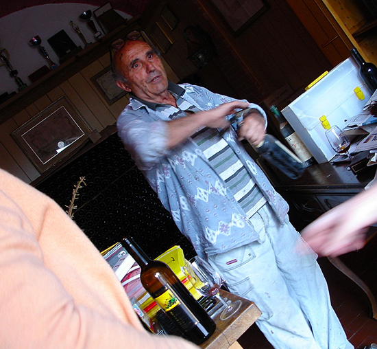 La solita visita a sorpresa in un tiepido pomeriggio autunnale, quattro amici , la solita scusa, andare ad assaggiare in anticipo il Superiore in uscita , l’eccellente e grintoso 2009 che fa dimenticare le mollezze e le sinuose rotondità della 2008, e poi un giro di bicchiere sulla 2010, tanto per rifarci le narici sui profumi che in seguito vireranno verso la classica mora selvatica mentre ora sono tutti sovraesposti su una golosa ciliegia matura.