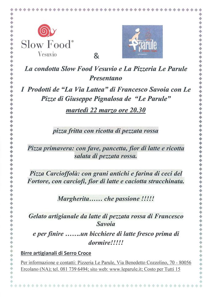 Martedì 22 marzo incontro fortunato e goloso tra i prodotti caseari di Mara e Francesco Savoia e le pizze di Giuseppe Pignalosa a Le Parùle con Slow Food Vesuvio. Francesco Savoia in Irpinia a Roccabascerana alleva vacche della razza pezzata rossa di origine friulana. Territorio scelto dall’allevatore in quanto questa razza di bovini nel Friuli non conosce malattie infettive e produce un latte ricco di betacaseine A2A2, le stesse del latte umano, fattore che lo rende più digeribile e perfettamente assimilabile.