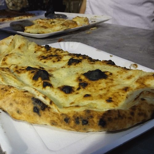 Tra le due proposte portate da Gino (una era la fritta di Zia Esterina) ho scelto di menzionare questa pizza che ho trovato interessantissima. Strutto e fior di latte di Agerola in forno e fuori forno con tarallo di Leopoldo sbriciolato sopra. Una pizza da pieno centro di Napoli, lì tra Decumano maggiore e Decumano minore, resa gourmet dal più tradizionale degli street food di Napoli. Neapolitan Gourmet.