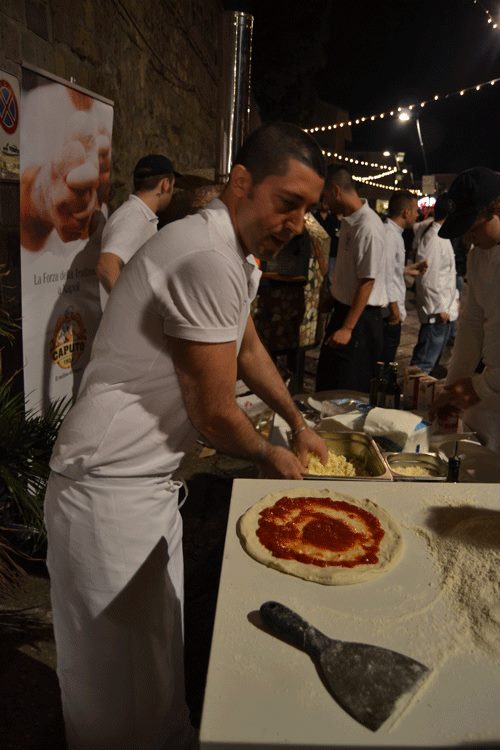 Tra i pizzaioli che si sono alternati nella tre giorni della bella Festa una simpatica costante è stata quella di presentare il proprio o in versione tradizionale o in riproposizione di proprie pizze must. Qualcuno ha anche osato ma senza abbandonare gli ingredienti della napoletanità o dei canoni della pizza verace napoletana.
