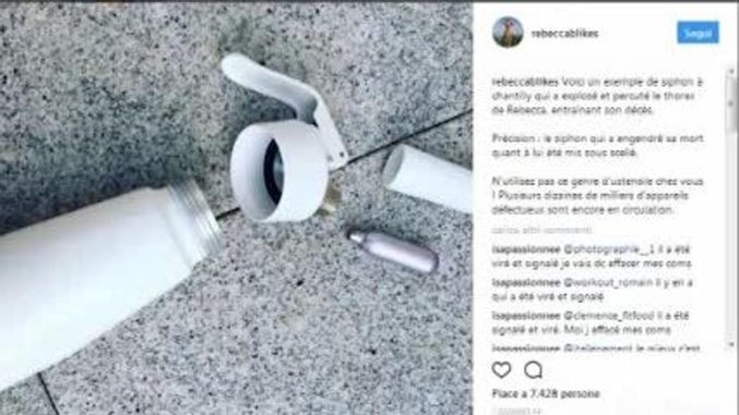 Negli ultimi 4 anni si sono registrati 20 incidenti con questo sifone. Purtroppo questo è il primo mortale perché esplodendo ha colpito il petto di Rebecca e per la povera food blogger non c’è stato nulla da fare.