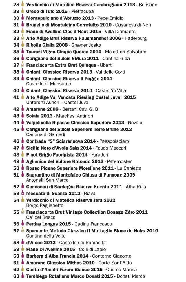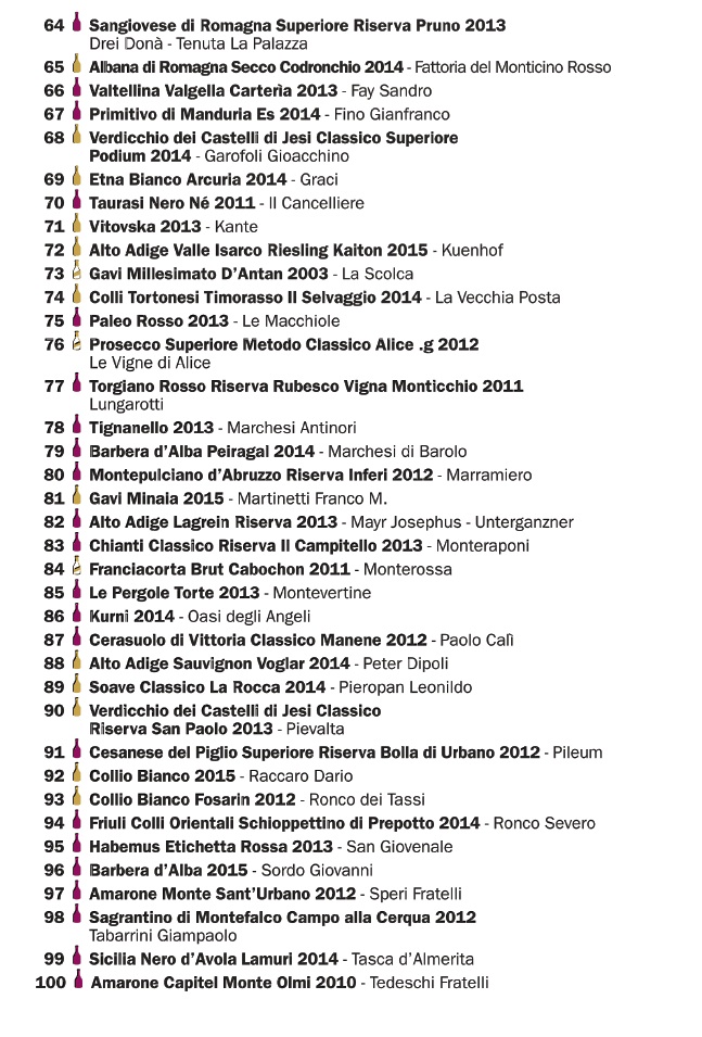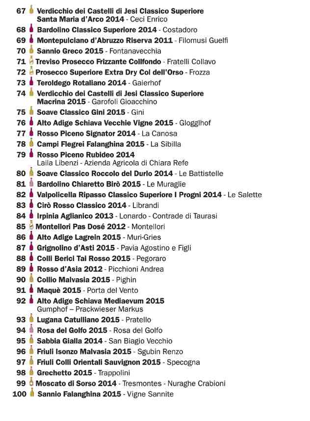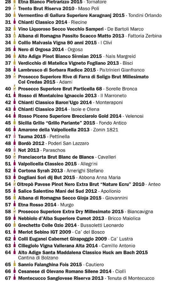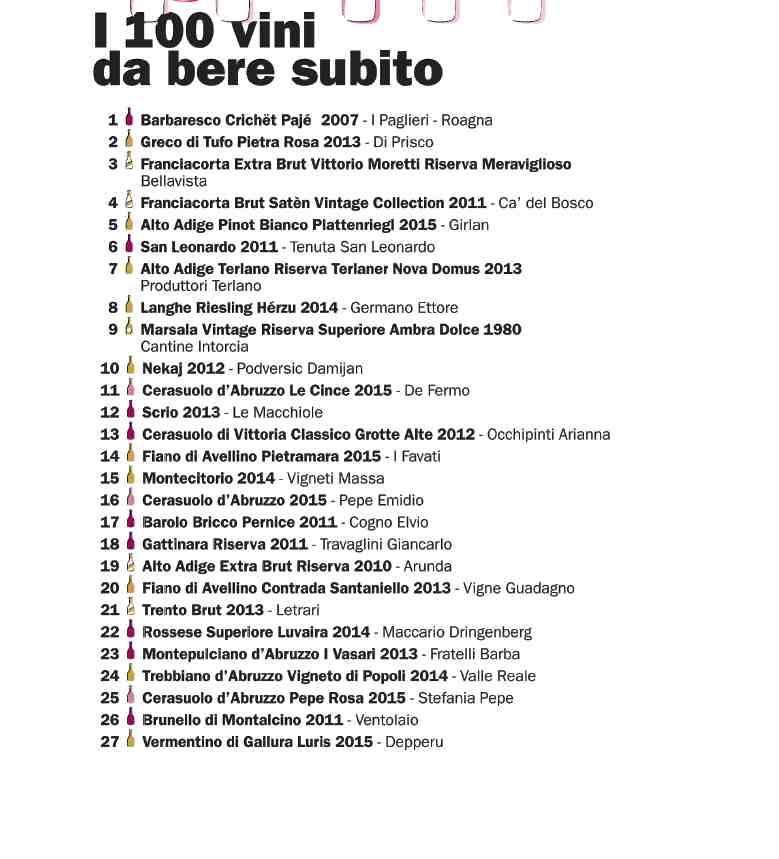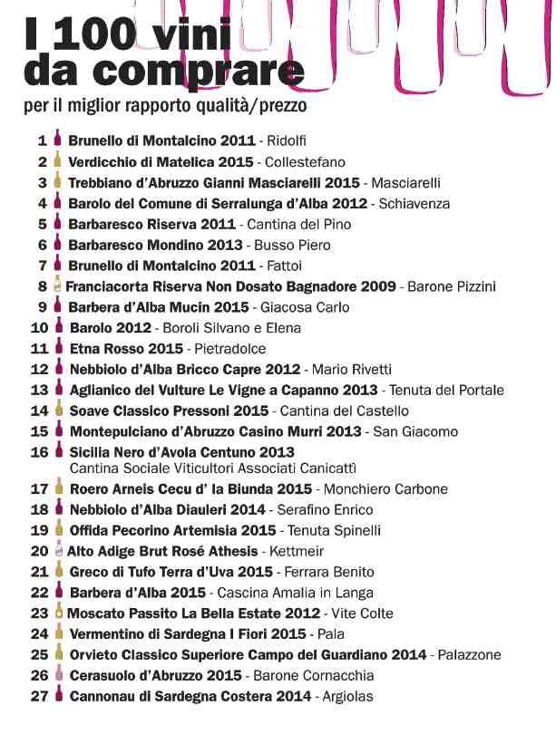 affinarsi e migliorare nel tempo; i “100 vini da comprare”, per l’ottimo rapporto tra la qualità intrinseca e il prezzo sul mercato.