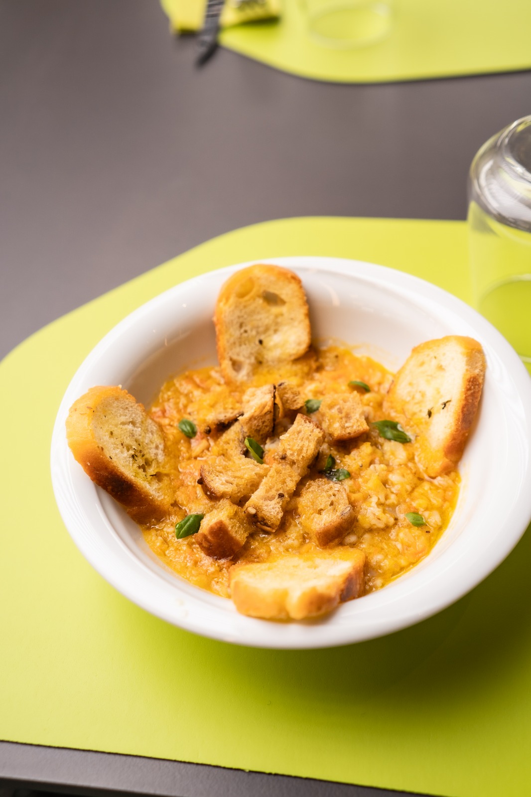 L’ambiente è luminoso, accogliente e curato nei dettagli, pur mantenendo un’eleganza essenziale, espressa anche in una mise en place semplice ma attenta.