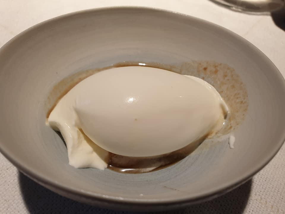 L’uovo, i piselli lagrima e il verdel (pesce azzurro, della famiglia dello sgombro), gusto di fumo di brace, di diversa intensità e persistenza per ogni alimento, hanno una cottura millimetrica. Difficile da pensare anche per il più tecnologico attrezzo da cucina. Stupefacente.
