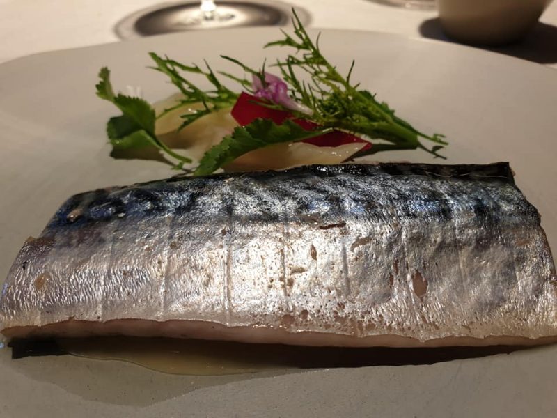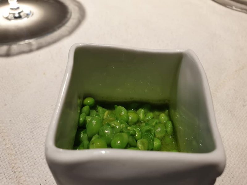 L’uovo, i piselli lagrima e il verdel (pesce azzurro, della famiglia dello sgombro), gusto di fumo di brace, di diversa intensità e persistenza per ogni alimento, hanno una cottura millimetrica. Difficile da pensare anche per il più tecnologico attrezzo da cucina. Stupefacente.