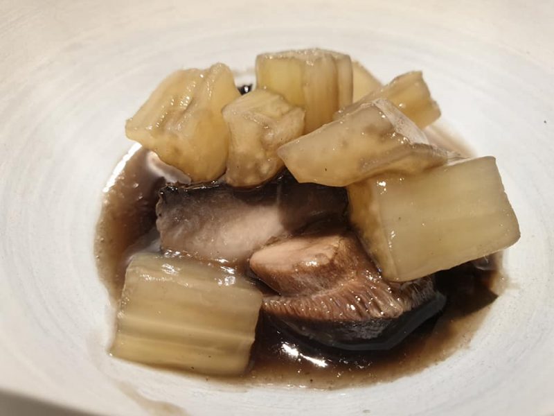 I “marzuelos con cardo” (funghi con il cardo) portata intermedia per pulire il palato dal gusto del pesce e prepararci a quello che è il piatto principale del pranzo, la “chuleta de vaca“.