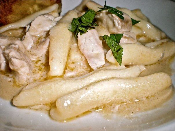 Anche i più diffidenti nei confronti della melanzana devono arrendersi di fronte alla dolcezza della melanzana violetta, la conferma arriva con la pasta di casa, i cavatelli, conditi con una crema di queste melanzane unite al tonno che assaporiamo con il rosato di magliocco dolce di Serracavallo.