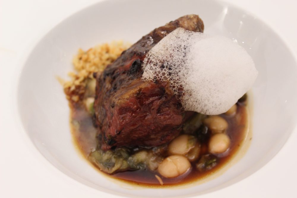 un secondo davvero molto buono “La guancia” Zuppetta di fagioli di Controne e scarolina, aria di birra, croccante di panko proposto dallo chef stella Michelin Peppe Aversa (Il Buco – Sorrento NA) – Chef Antonio Tecchia (Il San Cristoforo – Ercolano NA) in abbinamento troviamo Commenda Magistrale – Maruggio TA “Racemus” Primitivo del Salento Igp annata 2015