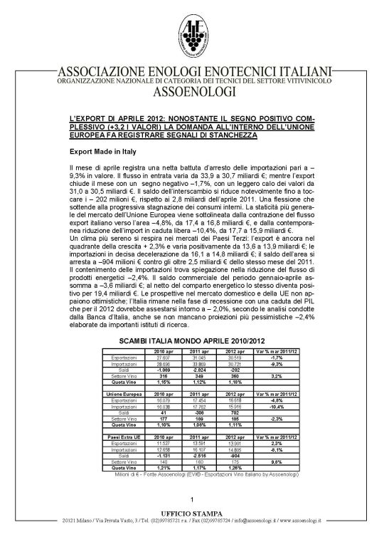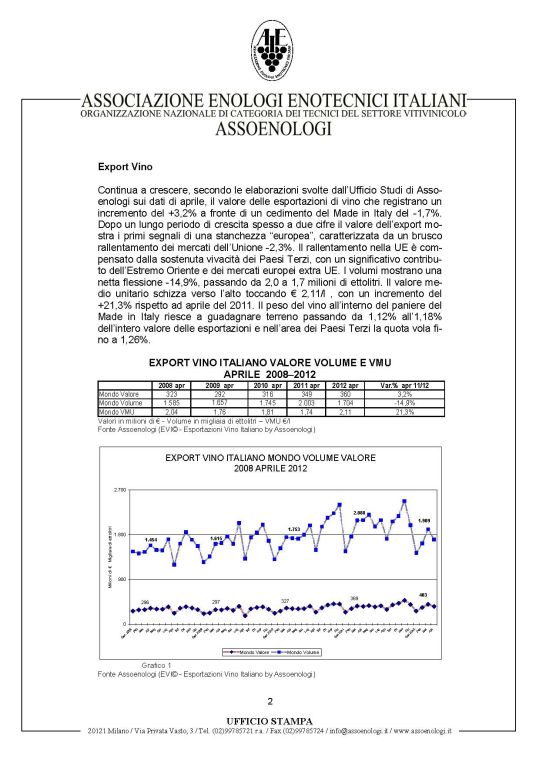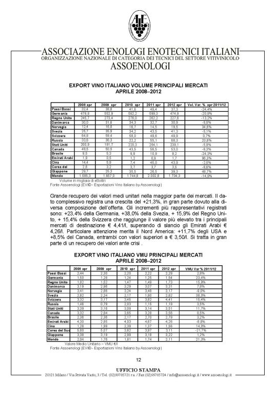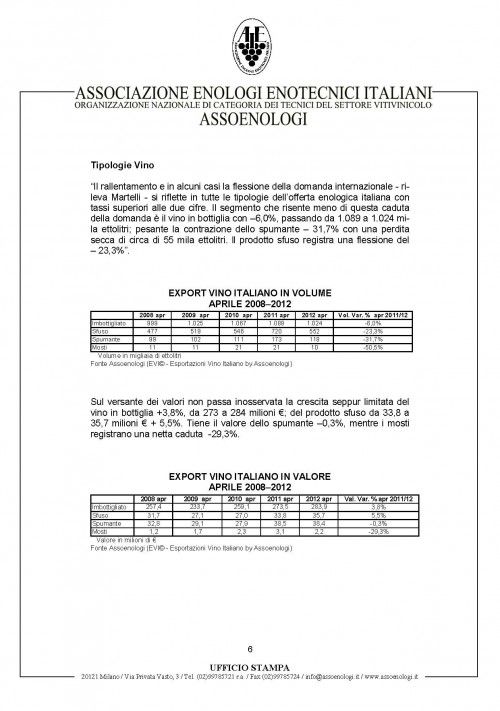 Export vino italiano secondo Assoenologi, aumenta nel mondo ma in Europa frena 2/8/2012 1.9 MILA LETTURE Giuseppe Martelli, presidente Assoenologi Cliccare sulle immagini per ingrandirle e