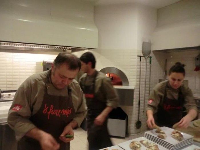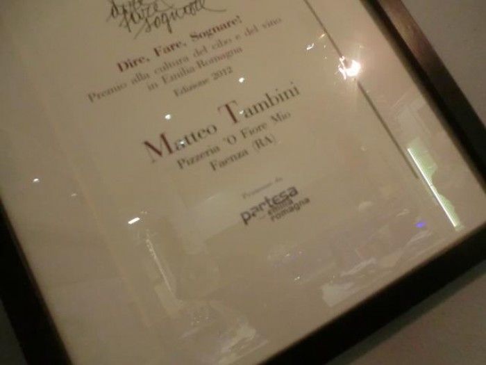 E giusto un anno fa è nata ‘O Fiore Mio, pizzeria con forno a legna, in collaborazione con Matteo Tambini, suo alter ego progettuale che si è occupato della scelta dello staff e della definizione delle pizze da inserire in carta e con Giorgio Melandri, giornalista e degustatore, qui nel ruolo di suggeritore di vini e oli. Così come un anno fa è nato il loro lievito madre. Realizzato nel settembre 2011 da farina di grano tenero, acqua e tre antiche varietà di frutta coltivate da Domenico Ghetti, appassionato contadino di San Giorgio in Ceparano e fornitore della pizzeria: una pera “Angelica”, una mela “Abbondanza rossa” e tre sorbe.