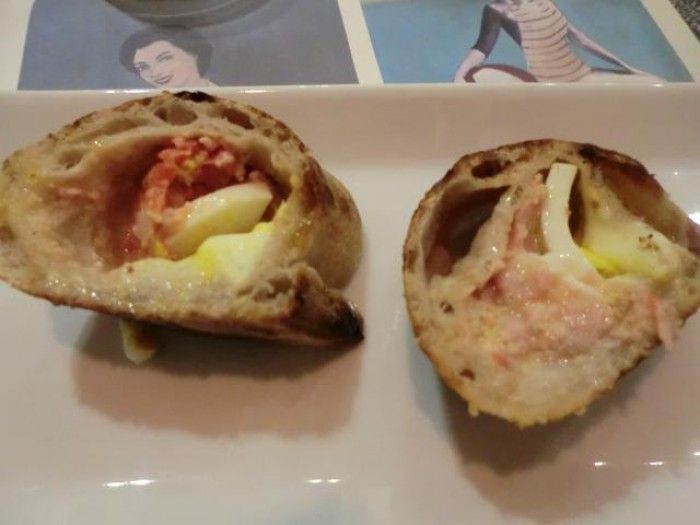 Abbiamo provato una margherita classica (forse la meno convincente dell’assaggio); una ottima “napoletana” con farina di farro e acciughe davvero speciali; la “mastonicola” e uno strepitoso calzone: il ripieno con mozzarella, uova e prosciutto, solo un’idea di pomodoro (fresco e profumato, servito a parte) portato in tavola già affettato e condito con olio extravergine di oliva. Per chiudere degnamente con la pizza della casa, ‘o fiore mio: burrata e prosciutto crudo di eccezionale dolcezza.
