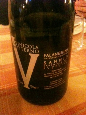 Tra le produzioni interamente sannite spiccano il Principe Lotario (metodo classico, primo nel Sannio, da uve aglianico prodotto da Fontanavecchia), il Cinquantenario (metodo classico da uve falanghina de La Guardiense) e l’etichetta di cui parliamo, la Sannio Doc Falanghina – Vino spumante, prodotta dalla Vinicola del Titerno, azienda attiva a Massa di Faicchio, leader sul mercato per quanto concerne il brand “Solopaca”, che negli ultimi anni ha dato il via ad una nuova linea con lavorazioni più attente nei campi (sfruttando al meglio i vigneti di proprietà) ed in cantina.