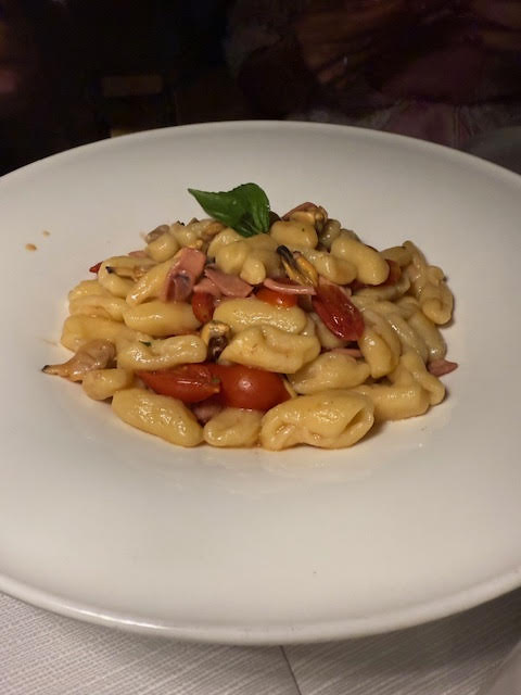 Ad impreziosire l’offerta è arrivato Adriano Longo, nato ristoratore e figlio di ristoratore, con un ristorantino di mare delizioso, intimo e con una materia prima che non ammette discussioni, come del resto quasi ovunque avviene a Paestum per il mare: meno di 90mila abitanti popolano 10 mesi su 12 una costa lunga cento chilometri. Il mare è ancora generoso, un po’ meno del passato, ma ancora tanto rispetto alla media dei mari italiani. I tonni abbondanti fanno stragi di alici ma in compenso li troviamo freschi nei piatti, come pure le aragostine di Palinuro che, pensate ai guasti di Masterchef, uno chef di batteria ributtava in mare per comprare quelle dell’Atlantico!