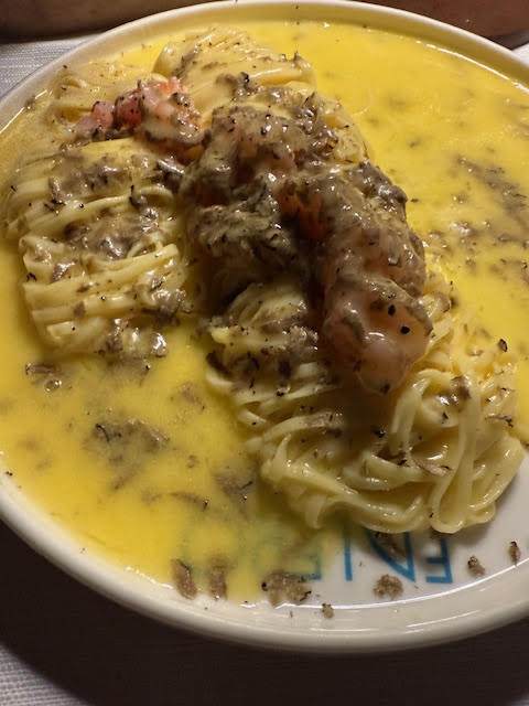 Falero: tagliolini con burro, gamberi e tartufo nero pregiato