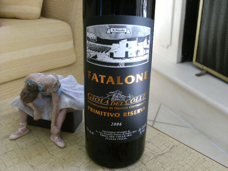 Esistono alcune bottiglie di vino in ogni parte del mondo che sono destinate a lasciare una traccia indelebile del loro passaggio e della loro magnificenza. Esse sanno raccontare attraverso ogni sorso la storia del territorio di provenienza e della gente che vi ci abita; degli uomini coraggiosi deputati alla loro produzione, che mediante gesti usuali, faticosi e ripetitivi hanno compiuto il miracolo; le infinite emozioni che trasmettono tutte le volte che si viene a contatto con esse; l'attimo fuggente, seppur ludico, che ci ricorda il tempo che scorre ineluttabile verso la fine del nostro essere, quando non potremo più godere di simili privilegi. E non bisogna andare troppo lontano per scoprire questi tesori, simili alle perle dell'immaginifico Fedro, basta girare l'angolo ed oplà ci si imbatte in una di queste etichette meravigliose, come per esempio Il Primitivo (anzi U'Pr'mat've com'è scritto sulla controetichetta) Fatalone Riserva 2006 Gioia del Colle Doc di Pasquale Petrera, che all'ultima edizione di Radici del Sud ha ottenuto il primo posto da parte della giuria internazionale. Mi ricordo che proprio in quella occasione ho trascorso una serata memorabile durante la verticale di questo vino dal 2008 al 2000 alla presenza di esperti provenienti da ogni angolo della terra, che ho poi cercato di raccontare per questo blog.