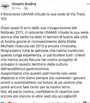 Felice Sgarra chiude lo stellato Umami ad Andria