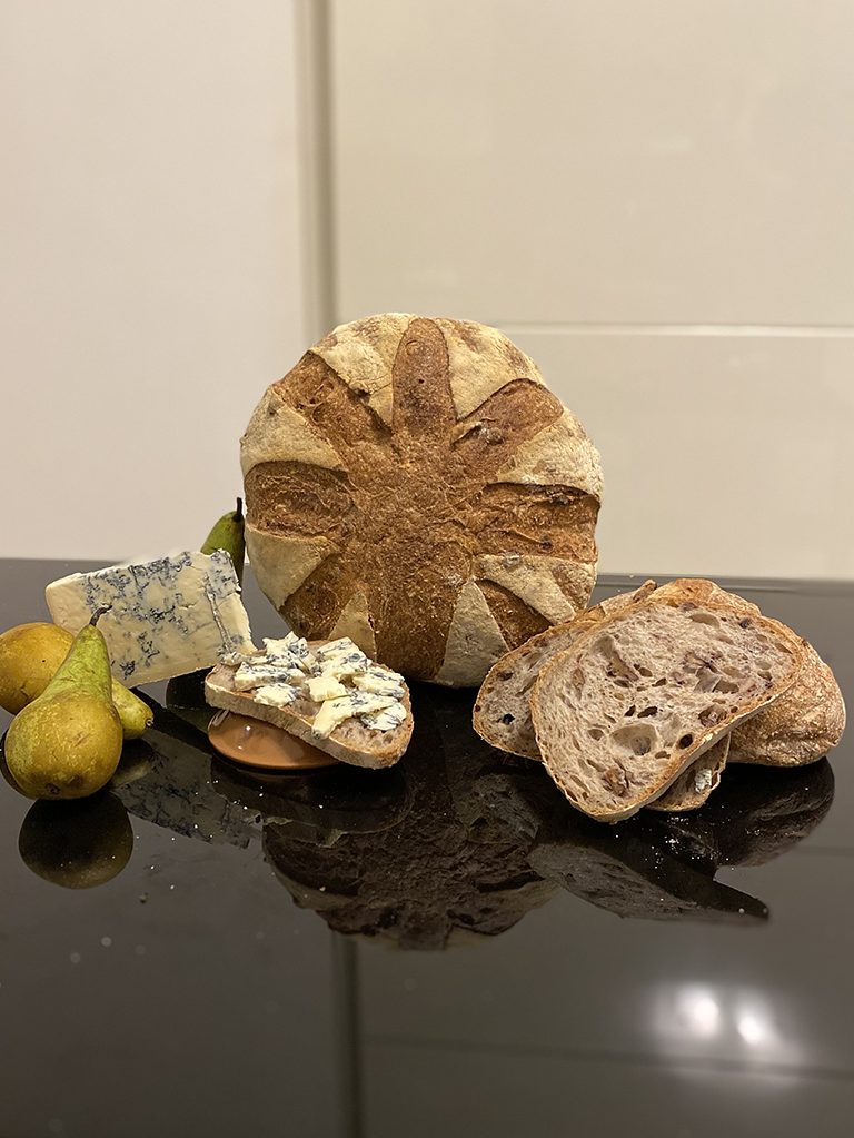 La farina di tipo 1 dà stabilità e sicurezza, mentre quella integrale dona un tocco rustico al prodotto finale. Nell’impasto troviamo pere Abate e gherigli di noci di Sorrento e il pane è presentato in grande pezzatura (da 1,5 kg a 3kg) così da mantenere per 4-5 giorni la giusta morbidezza.