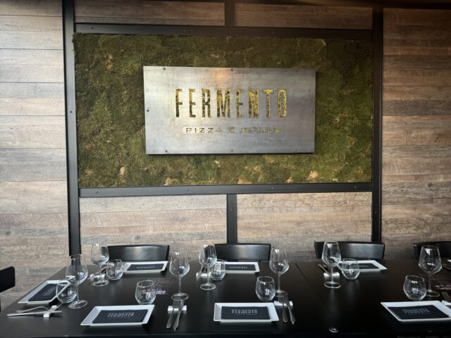Federico Visinoni, pizzaiolo ospitante della serata, insieme al suo socio Massimo Gazzi, beer sommelier, barman e futuro sommelier del vino, hanno inaugurato Fermento Pizza & Bolle ad Aprilia due anni fa, in una posizione comoda e con ampio parcheggio, particolare non trascurabile. Il locale, dall’atmosfera accogliente, con un cockatil station e un ampio dehors, può ospitare 90 persone all’interno e altrettante all’esterno, offrendo la possibilità di gustare un aperitivo con una ricca selezione di bevande. Il lavoro di Federico sull’impasto lo ha portato a vincere il primo posto nella categoria di pizza al taglio al Pizza World Championship di Parma nel 2015. Da Fermento, la pizza offerta è la classica tonda realizzata con un impasto ad ad alta idratazione e con cornicione medio. Una contemporanea, dove la ricerca e l’attenzione verso le materie prime sono al centro della proposta, con occasionali richiami alla tradizione romana nella stesura che celebrano le radici della pizza locale.