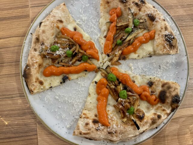 La sinergia tra i pizzaioli è stata evidente dal primo morso, con combinazioni di sapori e consistenze, con pizze che portavano con sé un pezzo della tradizione e dell’innovazione di ciascun locale. Verdure e formaggio da Priverno e pesce fresco della costa pontina – da Ponza e da Terracina – hanno creato un legame sul disco di pasta lievitata dei due locali.
