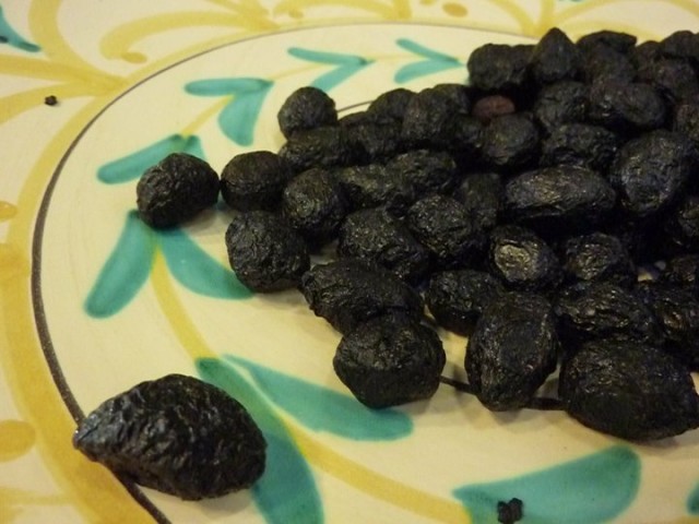 Le prime testimonianze di questa lavorazione, che riesce ad esaltare la naturale sapidità dei frutti pur mantenendone la caratteristica dolcezza, risalgano al Settecento. A partire dal 1910 le olive non sono più cotte nei forni a legna ma messe in essiccatoi ad aria calda, innovazione che non ha compromesso la qualità originaria del prodotto.