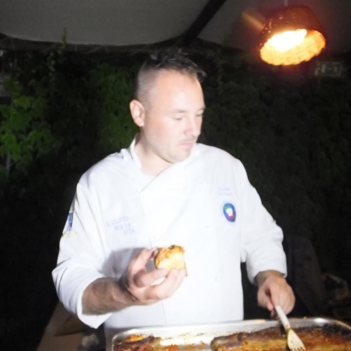 Più in là, poi, ho trovato lo Chef Peppe Guida. Una stella Michelin e tanta, ma proprio tanta professionalità. Osservo e sul tavolo scorgo solo due limoni e, nel mentre cerco di capire cosa ha proposto, lo vedo arrivare con degli spaghettini cotti con la tecnica della risottatura che condisce a freddo con abbondante olio extravergine, provolone del Monaco e buccia di limone grattugiata finemente. E’ un momento di commozione profonda. La devozione per i propri luoghi e per i prodotti. Sto ancora cercando le parole per spiegare le sensazioni provate ma non vi riesco.