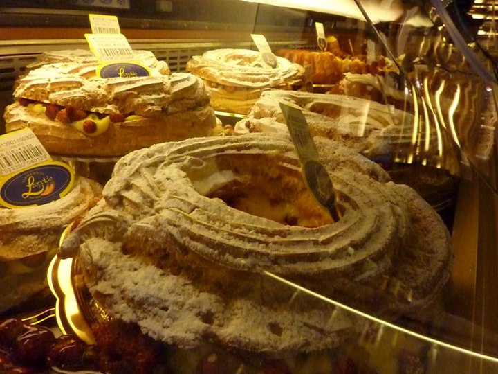 Da provare anche lo Zeppolone che è quel monumentale dolce della prima foto. In questo caso la pasta è al forno e dentro c’è crema chantilly e fragoline.