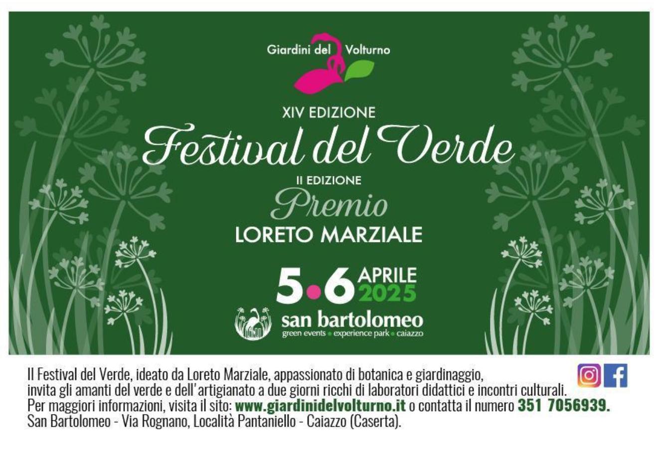 Festival del Verde 27/3/2025 Torna a: Festival del Verde Giardini del Volturno a SAN BARTOLOMEO GREEN EVENTS EXPERIENCE PARK