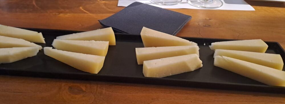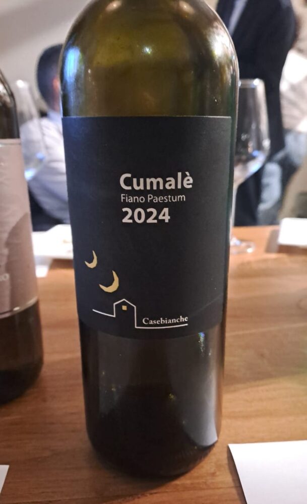In abbinamento, “Latte d’Inverno” un formaggio a latte crudo, ma a pasta cotta e abbastanza sapido da sposarsi perfettamente con l’acidità di Cairis. Il secondo vino è il Cumalè 2024 di Casebanche, un’azienda di Torchiara, situata in una zona completamente diversa dagli Alburni, dove il terreno fluviale e sabbioso conferisce sapidità al vino.