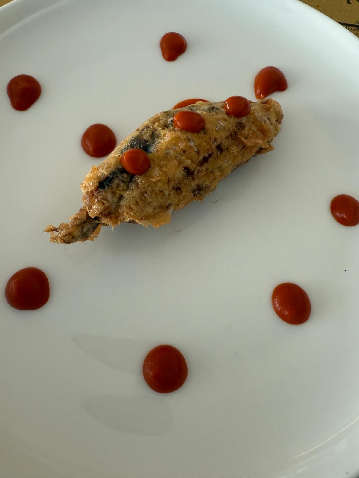 Tra i cavalli di battaglia di Danilo ci sono le alici inficate e in effetti a ben ragione direi. Preparate con cura, la panatura sfiziosa si fa un unico corpo con l’alice stessa e il suo ripieno. Se non sapessi di dover assaggiare altro avrei chiesto sinceramente il bis.