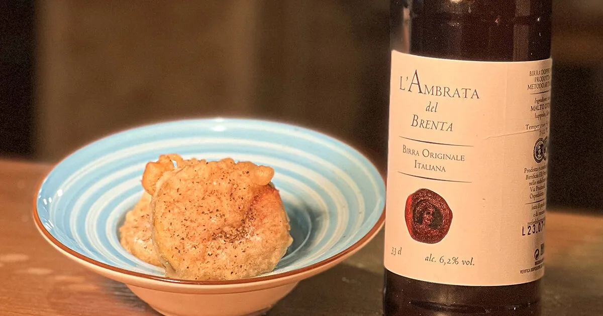 La ricetta nasce, un po’ per caso, un po’ per necessità, nel corso di una serata di grande affluenza, avendo terminato, in locale, gli appetizer di benvenuto e avendo a disposizione i fichi cilentani. L’azzardo ha avuto un ottimo riscontro da parte dei clienti, tanto da decidere di lasciare la preparazione stabilmente in menu. In abbinamento l’Ambrata del Brenta, che accentua la dolcezza del fico, donando una nota di caramello, e che rende il fritto ancor più asciutto e croccante.