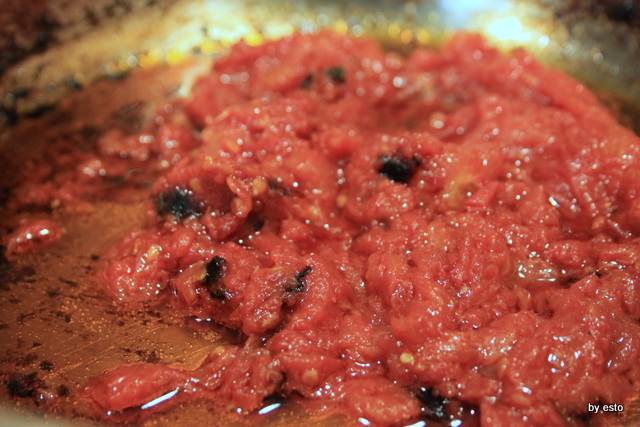Salare appena, lasciar asciugare la salsa, farla arruscatella, e infine metterla da parte.