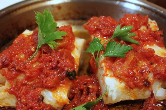 Filetto di stoccafisso al pomodoro, curuniello a’ cassuola