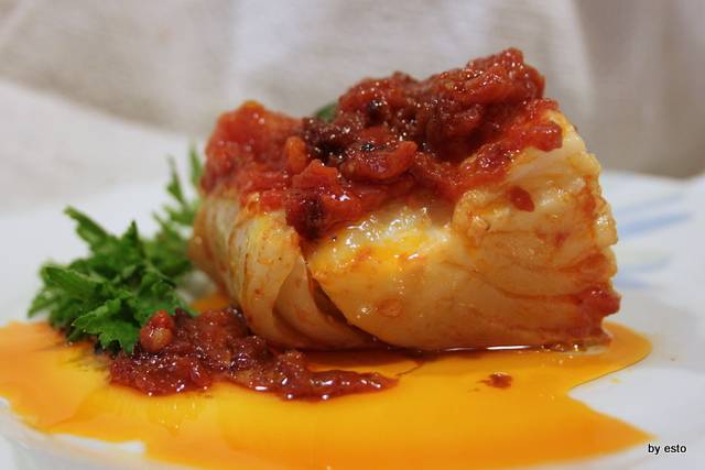 Ricoprire con la salsa e qualche foglia di prezzemolo.